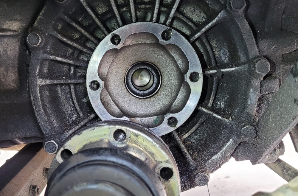 I have a 2001 Boxster S with the 6-speed transmission and it's had a small transmission/differential leak that appears to be coming from the driver's side main shaft. This is the shaft that comes out of the trans/diff and has a flange on it that connects to the axel. How do I remove this shaft and get access to the bad seal? I've seen other instructions that include removing a nut or bolt in the middle of the flange but mine does not seem to have either (see pic below.) Thank you!