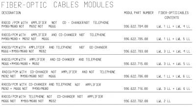 4. All Boxsters (and Carreras) have CAN (Controller Area Network) bus items that are used for controller to controller communication (i.e. DME to Tiptronic, Instrument Cluster, PCM, PSM, POSIP (airbags), etc.). Wikipedia at http://en.wikipedia.org/wiki/Controller_Area_Network. MOST (Media Oriented Systems Transport) is a networking standard intended for interconnecting multimedia components. So your sound system (radio/Nav, amp, CD player, etc.) use the MOST bus. Wikipedia at http://en.wikipedia.org/wiki/Media_Oriente...stems_Transport