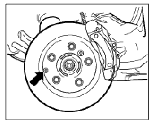 16. 1. Release the FPB pedal so that the wheels and brake discs can turn freely. The wheels may still grind slightly even then! If this happens, loosen the rear brake cables by moving them to and fro gently. 2. Remove rear wheels. 3. Adjust brake shoes (on both wheels). To do this, unscrew the plugs -Arrow- and turn the brake disc with the opening towards the adjustment device position. Using a screwdriver, modify the adjustment device until the wheel can no longer be turned. Then unscrew 6 teeth (wheels must be free to turn). 4. Check the free play on the pedal module once again. 5. Mount rear wheels.