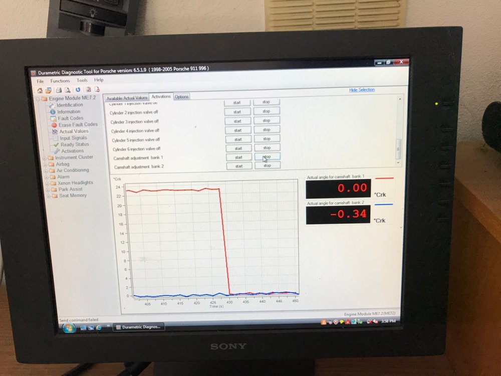 At the smog test facility (DEQ), all systems had become ready except the secondary air (after logging about 50 miles in all different conditions). I don't know about other states but in this state you can have up to 1 test device "not ready" and still pass. Its been very hot here in the northwest the past week with temperatures over 100 degrees. Combine this with some aggressive driving and stop and go traffic. So far there are no leaks spotted. Everything looks sounds and drives great. Engine pulls strong, no misfires. I ran a quick Durametric test again today (see pictures). It still reports no errors. Engine cam timing is identical to before. I can now preform the "camshaft adjustment" on bank 1 and/or bank 2 from the program.