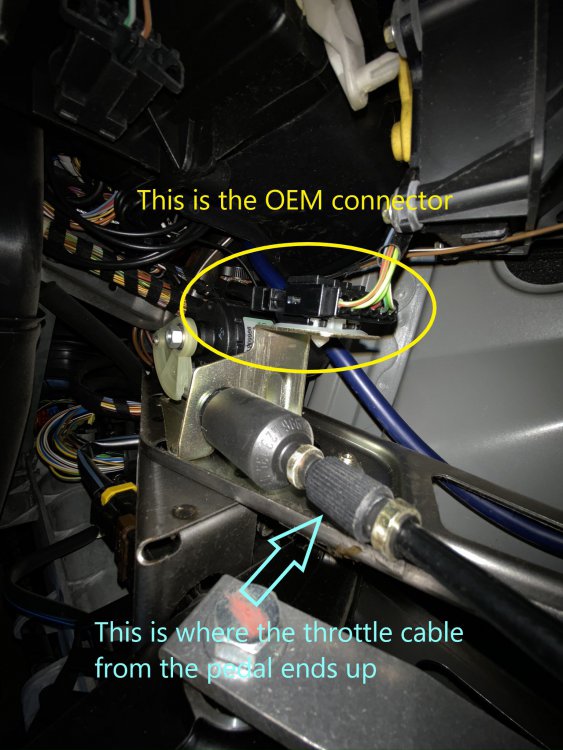 3-4 days later I get the box in the mail. It is a tiny little thing and doesn't appear to be much for the $300 I paid for it, but whatever. The installation manual shows pictures of the device being plugged into a port located somewhere on the gas pedal assembly itself. It is clearly the most common spot for most manufacturers to link the throttle to the ECU, but that's not the case in a Porsche 996. The gas pedal pulls on a cable and if you follow the cable up from the pedal, you'll see it attaching to a metal box conveniently located under the actual dashboard, and at an impossible angle for any human being to get to.