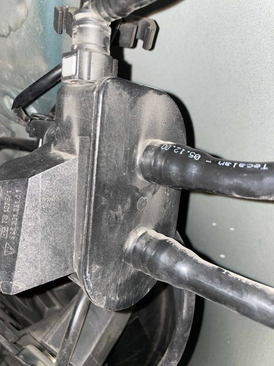 Some people have a problem with Fuse E6, which powers the ORVR system (grounds out from a telephone connector in the center console). Mine is fine. So next is the two valves. I pulled off the wheel liner to get to the valve in the wheel arch. I can hear and feel it activating. Then I pulled out the battery and the lid under it, getting to the fuel tank. The ORVR valve there I could also feel activating.