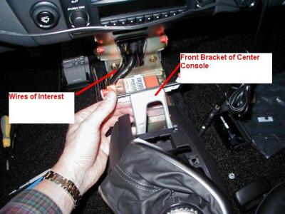 Thanks to Rockitman for posting his instructions with pictures. I have nearly completed my console delete modification on my 98 Boxster. However, while removing the front mounting bracket in the attached picture, the thin bundle of wires (also indicated in one of Rockitman's pictures attached here) came loose. Does anyone know what purpose those wires might serve? I can't see anywhere where they might connect. And if they're for some option I don't have, I'm concerned about rattles as those wires and the plug they join at is just flopping around loose under my console delete kit. Where is this small bundle of wires supposed to go? Please help, I'm almost done with this mod!