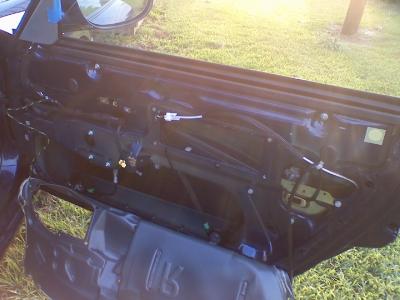 Okay, I finished my window regulator and it operates great now. However, when I did a water test just to make sure everything is operating as it should I get a lot of water inside the door cavity. The water gushes in when I spray around the side mirror. I have never had a water leak before so its bound to be something I am missing although I'm not sure what. My searches have brought me to the door membrane (which I presume to be the black foam type material that is glued down behind the door panel. When I did the regulator I carefully removed it 3/4 around (left the bottom attached). Does this have to be reattached to stop watering from entering the inside of the door panel because I have not reattached it yet? The searches seem to blame this and I could see how it would affect the carpet on the panel but I can't see how this would affect water from actually getting inside in the first place. I want to make sure I get it done right before I put it all together. That water can't be good because it drips straight down where the speaker will be, on the window regulator motor connector.... I have included a pic my door panel with the black material pulled back is this the membrane? forgot to attach the pic