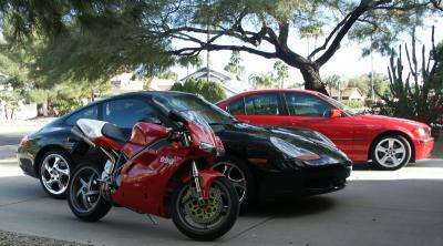 17. Hello all! Finally bought my dream car and I though I would post a hello since I am new to the forum. I have two 996es in the garage however only one is a Porsche. Hard to say wich one has a better looking rear. :P Wife drives a slightly modified 325i (5spd). Yes I know the chromed wheels are fugly, new wheels will be ordered soon. Oh yea btw :renntech: -Shawn