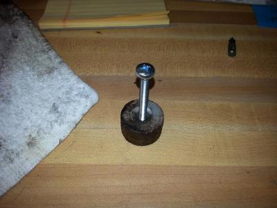 8. While servicing the front brakes on my '07 C4S one of the weights on only one of the damper pads got stuck in the piston and broke away from the pad backing. What follows is the process I used to remove it with always enjoyed pictures. I posted this because I could not find anything similar anywhere else. Having used the "how to's..." from this site and others many times I just wanted to offer a little payback if I could. The bad news, as shown in the above pic, is the pad damper with the missing weight which was securely entombed in the piston. Damper weights are held in place on the damper pad itself by a screw which was still attached to the weight after I removed the damper itself and easily removed ( in my case ) from the weight. Good news is that the threads in weight go all the way through to the back side of the weight. I suspect this is deliberate to allow for removal should they get stuck. had the corrosion extended to the screw soaking all in PB Blaster would have been my next step. Here's a pic of the screws I used to press the weight out of the piston. First screw was holding the weight to the damper, second and third were a 1-1/2 " cap screw and 1-3/4 " phillips head I had on hand. All screws have the same thread dimensions to insure a secure fit and allow for a plan "B" approach in the event plan "A" did not work. First thing I did was soak the piston and weight in PB Blaster. To facilitate same I removed the caliper to allow PBB to sock in better and more fully dissolve the corrosion keeping the weight from coming out. After 3-4 hours of soaking I inserted the shorter cap screw into the threaded hole in the center of the weight and screwed it in until I hit the bottom of the piston. ( Cap screws are preferable to phillips heads as they allow you to apply more direct torque to screw without stripping the head ) I proceeded gradually tightening the screw for a couple of 1/4 turns to determine if the PPB had had sufficient time to loosen the corrosions hold on the weight. Once I saw evidence of the movement in the weight I proceeded to run the cap screw all the way flush to the top of weight and then replaced it with the longer screw visible in the picture to force the weight all the way out. Note you do not need to remove the caliper to access the weight this way if it just needs gentle coaxing. However, the rotor would need to be removed in that case at which point it seems worthwhile to just remove the caliper. And success. Next step take some emery cloth to the inside bore of the all pistons to clean out the crud and eliminate a future recurrence of this time absorbing issue.