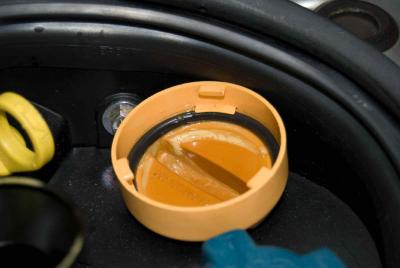 7. Thank you. Looks like the suggestion is water pump or tank. Was this related to the picture of the gunk in the cap? I changed my water pump about 20K miles ago - failed on the bearings and broke fragments off the fins (black plastic). That was at 43K miles. I'll check it through again. Water level looks normal (I check it every month and it is right between high and low as normal. I was also wondering about the oil/water heat exchanger. Maybe I have two problems? - one causing gunk and the other causing the fragments? thank in advance. Mark.