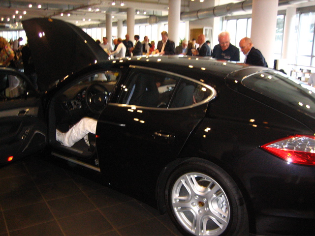 Friend just got back from a tip to Europe. She has a 987 and he has a 997 S. They check into their Berlin hotel and started walking around. Found one of the lifestyle places with the Porsche goodies, and checked it out. Guy inside the store says the Berlin intro is about to happen, and did they want to go. Invitation only - at a dealership. Had to get a wrist band. They went.