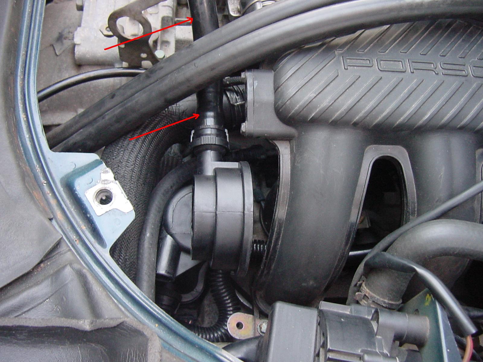 Note these photos are from a '98. Later 986's have a "Y" tube arrangement rather than a "J" tube that leads to the AOS.