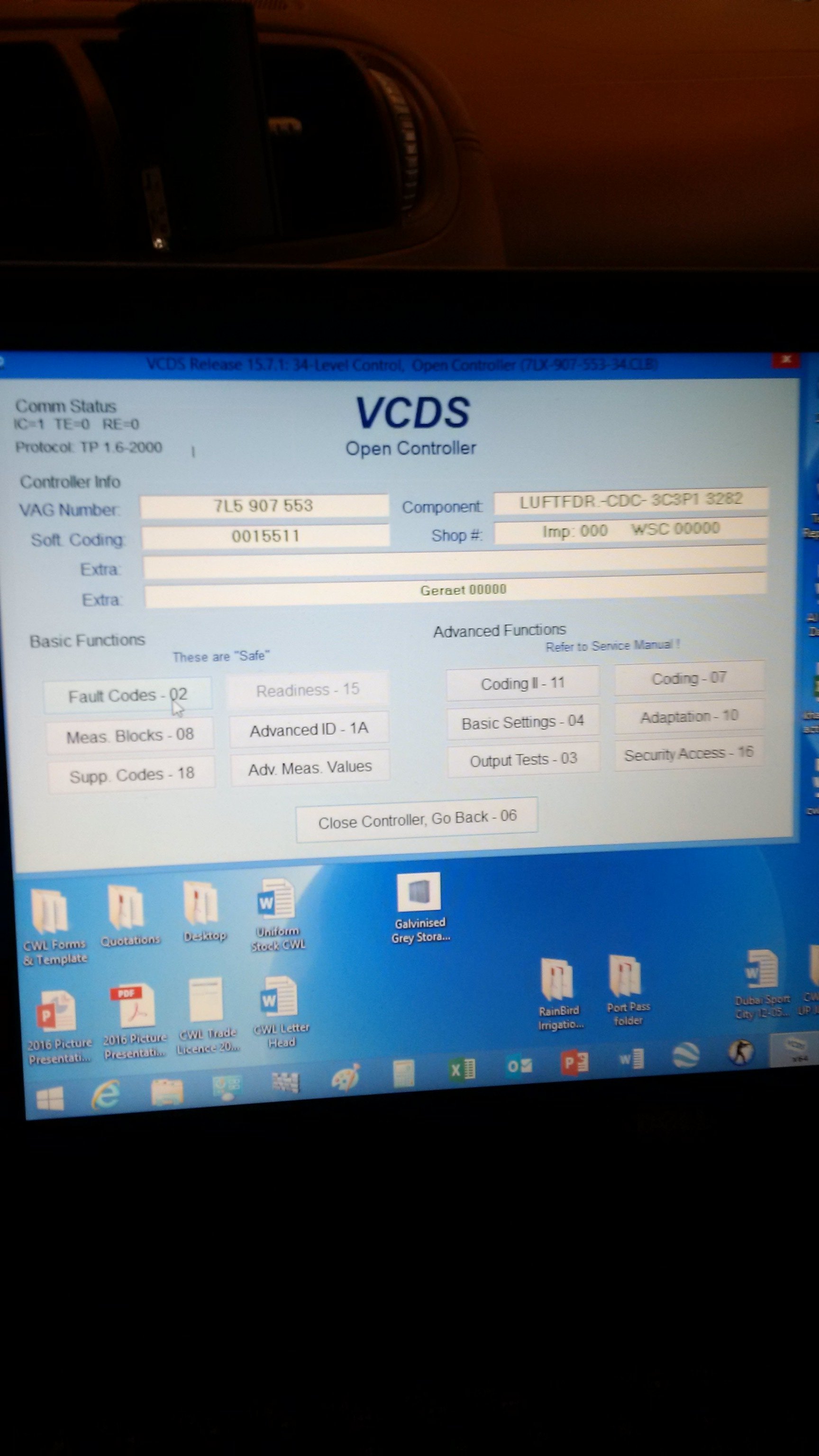 will do it tomorrow. I can ready out the Engine under a 2006 Touareg but the rest is not working. the struts in the front now up after 5 miles driving but it is not adjustable.